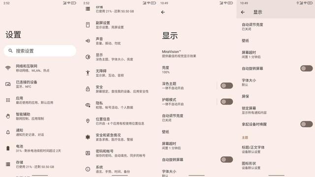 设置功能里,我们可以对副屏、显示、声音、通知等各种功能进行详细设置。显示里面可以调节屏幕亮度、深色主题等,这些基本上和常规手机操作一样。
