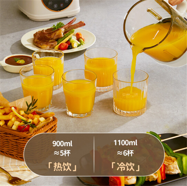 西屋柔音破壁机搭配了透明隔音罩,物理滤音降噪,顶部排气阀保护,有效排气,也能防止使用的时候,出现溢出的问题。同时还能有效隔热,防止家里小孩子误触。隔音罩内是高硼硅玻璃杯,5mm加厚食品级材质,1.1L/0.9L容量设计,基本一次可以满足一家人的需求。