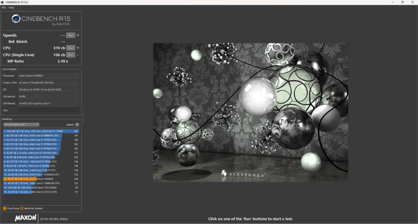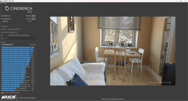 实测CinebenchR15多核成绩为370pts、单核成绩为106pts。CinebenchR23多核成绩为2198pts、单核成绩为618pts,相对来说,这样的得分也足够处理日常的办公和娱乐了,而且并不会出现卡顿的现象。