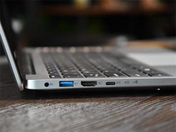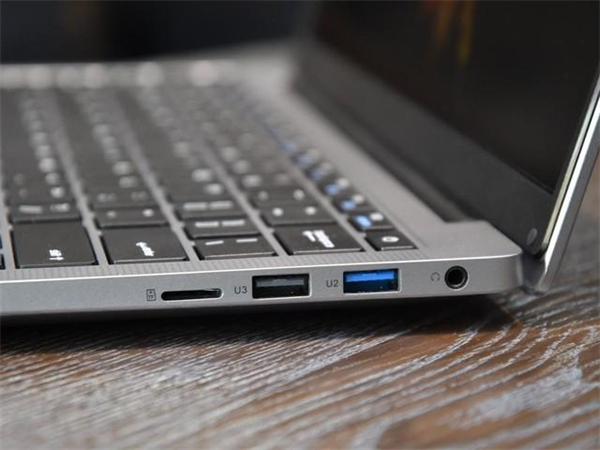 在扩展性能方面,该款轻薄本虽然轻薄,但是接口方面丝毫没有妥协。在机身的左侧,配有一个DC电源接口、一个USB3.0接口、一个HDMI视频输出接口、一个Type-C接口。而在机身的右侧,则拥有一个TF读卡器、一个USB2.0、一个USB3.0以及3.5mm的耳机接口,扩展性能十分丰富。