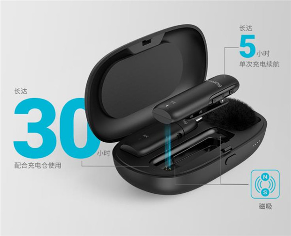 续航方面,斯莫格Wave W1-C麦克风内置低功耗芯片,可实现5小时无间断使用,配合充电仓使用,可实现最长30小时的录制,得心应手应对长时间视频录制与直播。此外,发射器端支持充电10分钟,续航1小时。