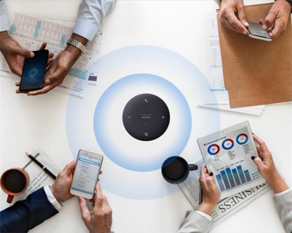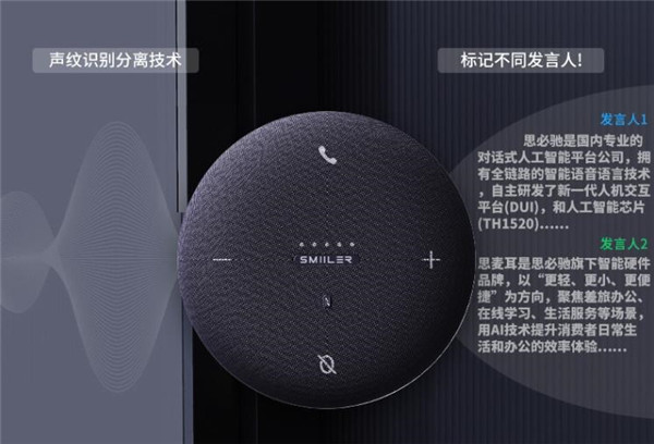 思必驰360°降噪会议麦克风音箱搭载四麦克风阵列,支持360°全向拾音,且拾音半径达4米;并配备专用AI芯片专业语音算法,可实现深度降噪、消除回音,同时增强人声,各方面表现都比普通手机电脑自带的麦克风要好很多;支持实时语音转文字、实时字幕等功能。