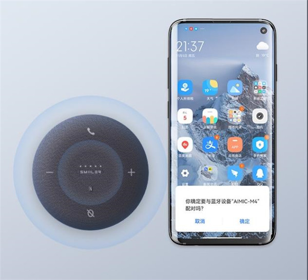 思必驰360°降噪会议麦克风音箱采用蓝牙5.1技术,兼容大多数手机、平板和电脑。首次连接时,只需在蓝牙设备的设置列表中选择“AIMIC-M4”即可快速连接,后续使用时开机即可连接已配对成功的设备。