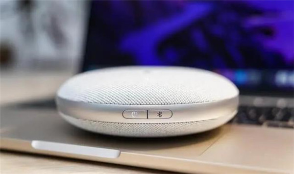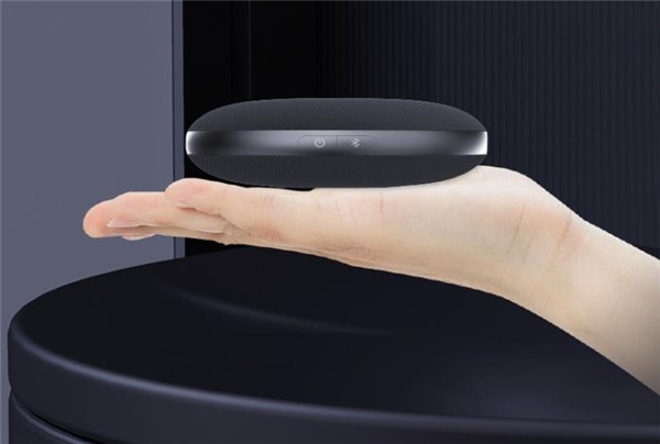 顶部中间是品牌Logo铭牌,铭牌下是NFC感应区域。中间是一圈哑光质感的腰线,设有电源键和蓝牙键,内置背光,用于显示设备工作状态。背面是Type-C充电接口。底部设有硅胶底座,柔软且具备一定摩擦力,并使机身与桌面隔开,起到缓冲、固定和保护的作用。
