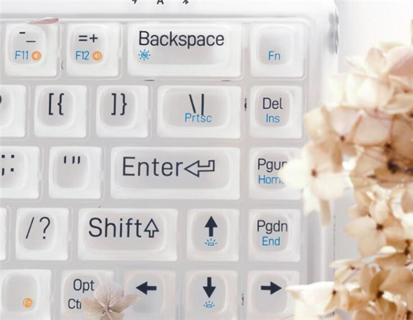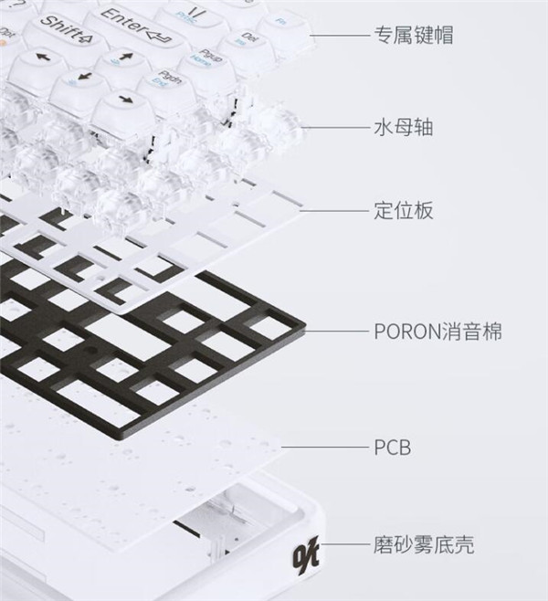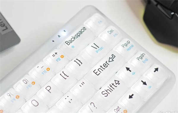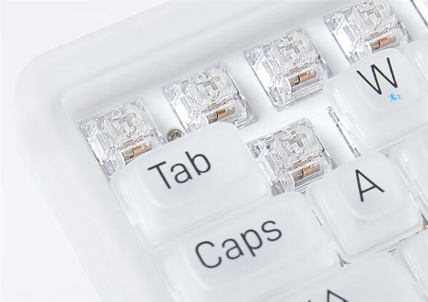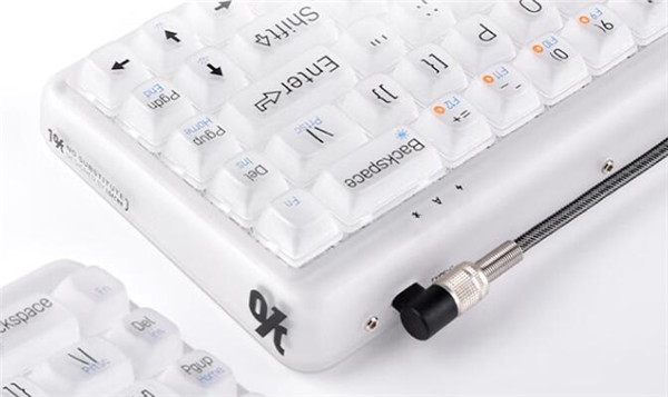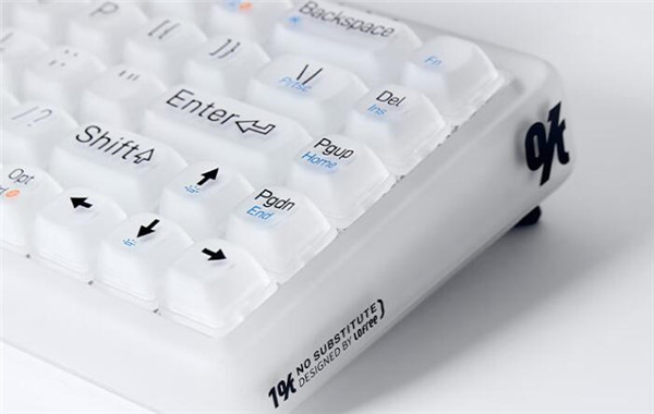 市面上极少能看到这种采用白色磨砂半透明质感材料打造而成的键盘,相对于透明主体来说,1%迷雾少了几分晶莹剔透的夺目,但是增添了几分若隐似现的神秘。