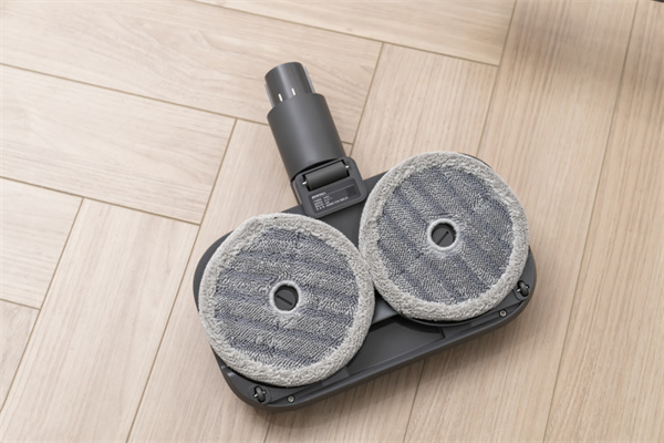 扫完之后自然就该拖了,追觅V16S吸尘器的擦地吸头采用了旋转擦地方式进行清洁,这是一套比较成熟的方案,不少扫地机器人都用了这样的模块,比如追觅自家的W10、X10等机型都是类似方案。工作时两块拖布高速旋转,加上下压力进行清洁。