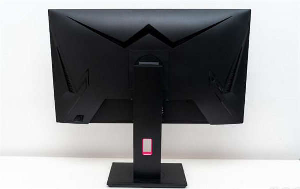 从背部看,KTC H27T22使用了蝙蝠侠的造型,顶部从左往右的W蝙蝠造型,内部还藏了两个灯条,左右两侧的还有一些细节的线条设计,棱线分明,如果注意到的话它的造型和包装的线条是一致的。