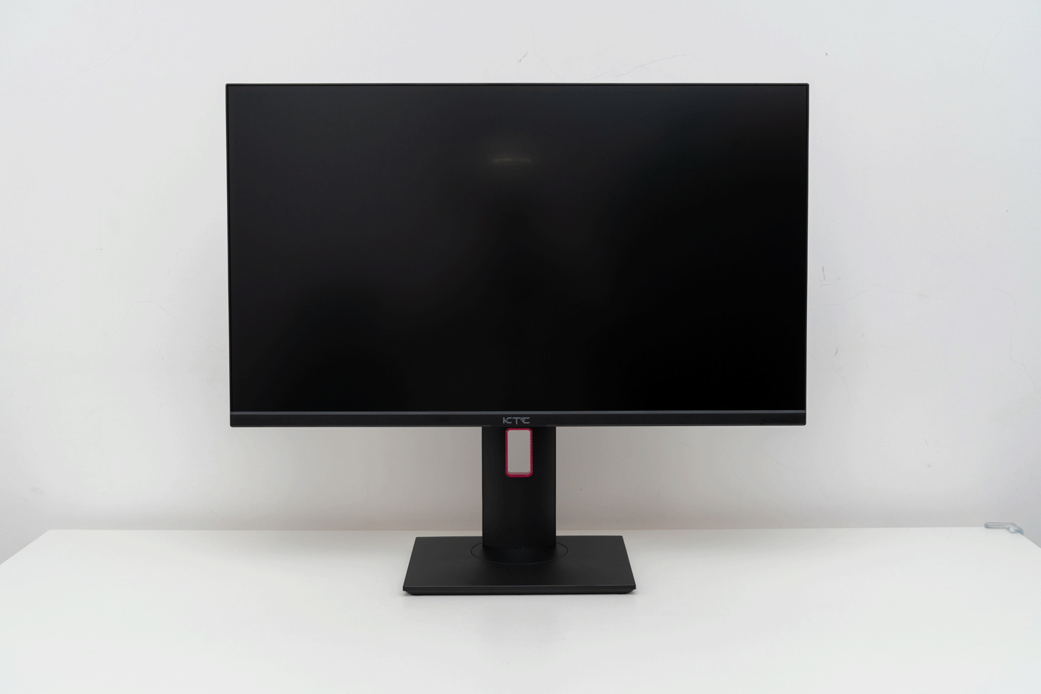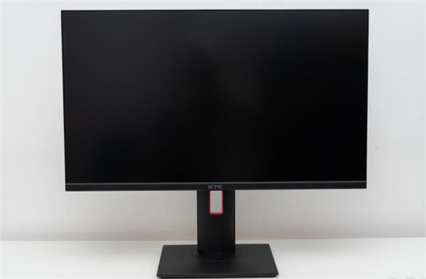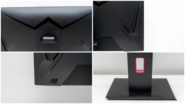 从正面看整体的颜值还是很高的,整体纯黑色,屏幕正面三边窄边底边宽边,中间有KTC的logo,算是比较经典的设计了。理线孔的紫色可以说是为整个显示器增添了一点色彩。