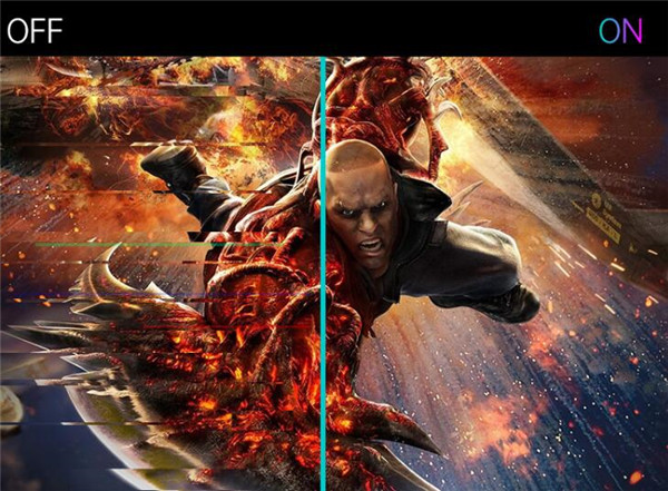 先来看看开关FreeSync/G-sync的区别,左边是FreeSync/G-sync关闭、响应速度也关闭的情况下,可以看到有比较明显的拖影,而FreeSync/G-sync开启、响应速度关闭之后,拖影有效减少。