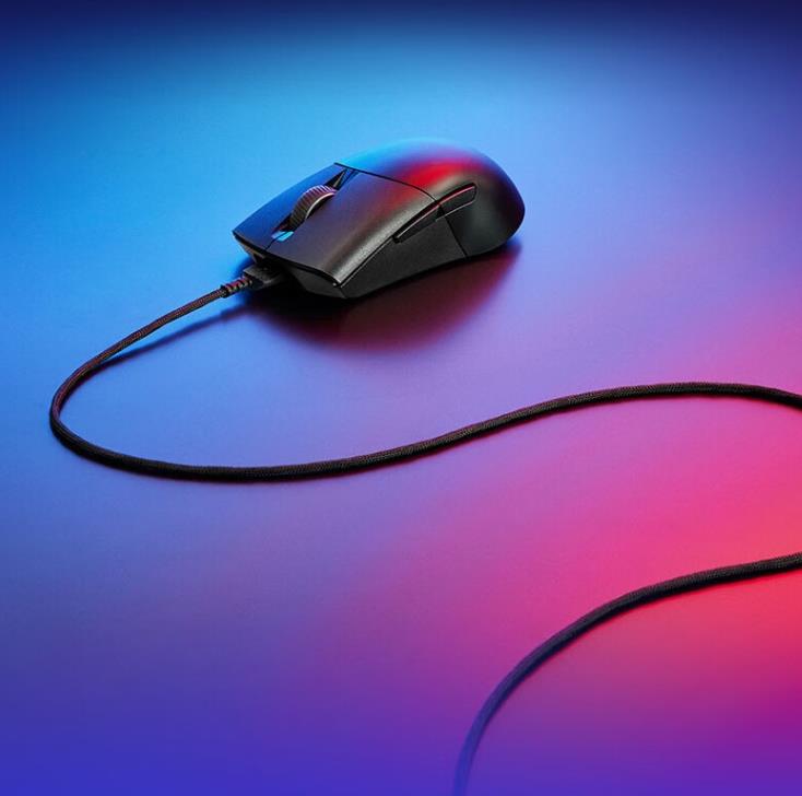鼠标的左侧有2个可编程的按键,侧裙也由2种不同材质的外壳拼接,前端PBT增加耐用度和摩擦力,后端亲肤涂层,让它在掌心中更加顺滑。
