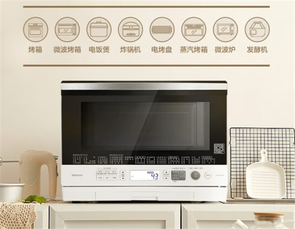 东芝微蒸烤一体机SD80,一台机器实现了烤箱+蒸箱+空气炸锅+微波炉+电饭煲+酸奶机等多重功能,能满足更多料理需求,也解决厨房拥挤的问题。能用它制作的菜谱范围也非常广泛,烤鸡翅,烤鱼、蒸鱼,蒸蛋、热菜,做酸奶等都完全能胜任。