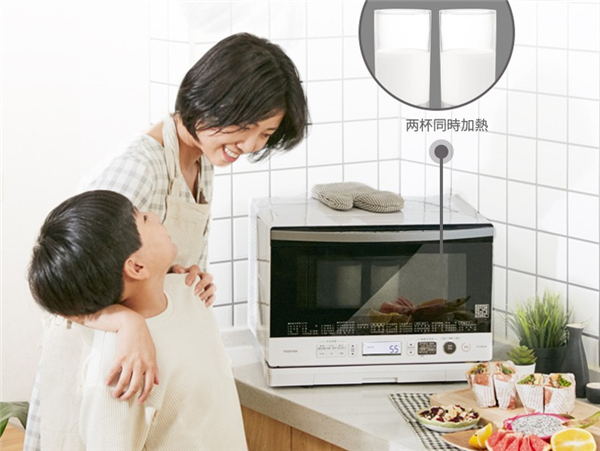 东芝微蒸烤一体机SD80红外传感器精准控温,可以对食物均匀加热,它可以同时均匀加热两杯牛奶。而微波炉由于不能均匀加热,所以用微波炉同时加热两个包子,有时候会出现一冷一热的情况,这个时候就需要重新再热一遍了,麻烦也费时间。