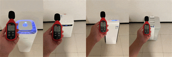 空净产品的运行噪音,其实也直接影响到你我的使用体验。最大风量下太大的噪音令人心烦意乱,最小风量下噪音或许可以忽略不计,但净化效果却可能受到影响……这四款空净的运行噪音如何呢?我使用分贝仪,在环境噪音约为35分贝的环境下,记录下了四款产品在最高、最低档位下的运行噪音,测试结果如下:
