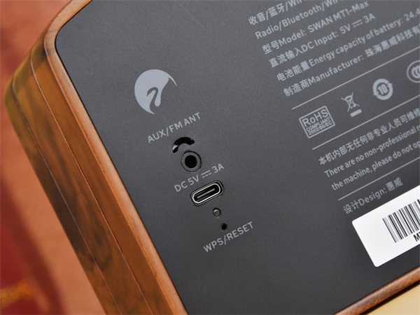 除了常规的蓝牙连接方式以外,惠威MT1-Max还支持WiFi连接。相比于蓝牙来说,WiFi拥有更快地传输速度和更稳定地连接,听音效果更佳。通过在家里的路由器上点按WPS按键之后,再点击音箱后面的RESET键就可以连接成功了。另外,通过旋转音箱上模式旋钮切换到WiFi挡位后,用手机等移动设备直接在WiFi设置里选择惠威MT1-Max的WiFi信号,输入密码12345678后就可以直接与音箱连接使用了。如果家中有比较老的播放设备还可以通过音箱背面的AUX音频线进行连接。