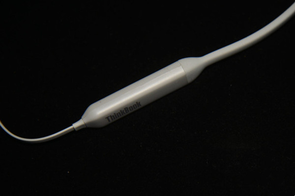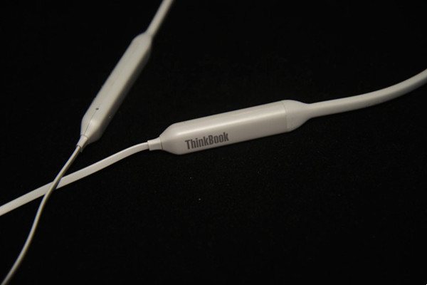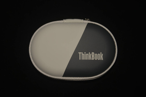 耳机主体采用传统的设计风格,背部清晰的铭刻了“ThinkBook”的品牌标识,具有磁吸功能,方便使用和收纳。45°左右的入耳角度设计,更加符合人体工学。