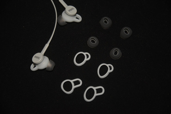 耳机的配件算是中规中矩,除了耳机主体外,还有一个收纳包、一份使用指南、一根Micro-USB电源线、一个USB适配器和一套耳套和硅胶耳挂。
