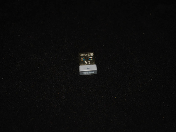 作为商务耳机,它还配置了一个USB适配器(接收器),充分考虑了部分台式电脑没有蓝牙的情况,整体外形和无线键盘鼠标的适配器是一样的,都是mini设计,它还设置了一个指示灯,共有蓝、紫、红三种不同颜色。另外在侧面还有一个小圆按键,是一个复位键。