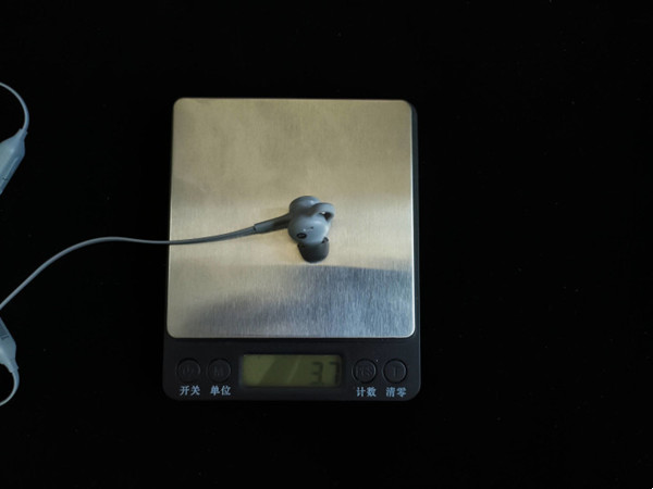 耳机采用了轻量化设计,单耳机仅有3.7g,真真的羽量化设计,而整机质量也仅有24.5g,加上颈挂式设计,绝大部分重量都是由脖子负担的,佩戴过程中几乎轻若无物。