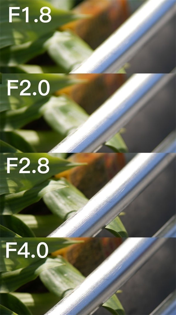在边缘画面部分,镜头的画质表现相比中央部分有一些差异。依然是从F2到F11光圈下,边缘画质表现最好。F1.8光圈全开和F16最小光圈下的画质可以接受。