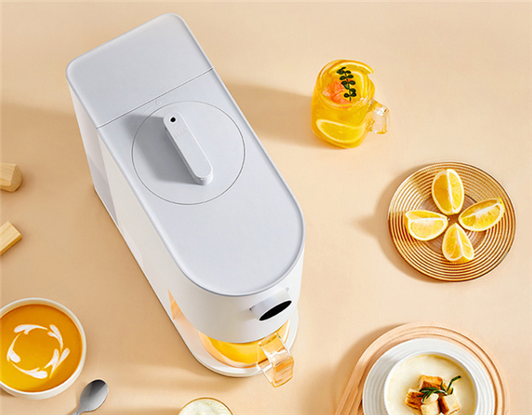 前部的旋钮集成了显示和控制部分,采用了OLED屏幕,文字清晰老年人也容易看的轻。旋钮下还有两颗触控按键,负责预约和取消,可以设置最长24小时的预约,晚上放食材早上就能喝了。