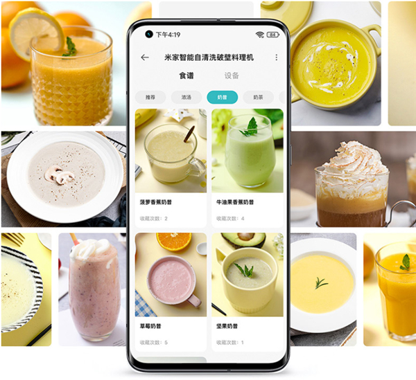 聊到APP,米家智能自清洗破壁料理机手机端内容非常丰富,内置菜单有按食谱和设备分为两个部分,菜谱按照机身上的预设,也分为了6个大类,囊活了各类冷热饮,目前有50+食谱,还在不断更新中。菜谱内都有详细的步骤和食材的用量,小白也能轻松掌控。设备部分可以快速的调用各个预设程序,并可以查看收藏的菜谱。