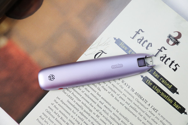 在机身背部,如布AI词典笔V11选择了一种具有阻尼感的磨砂材质,既能保证使用时不滑落,同时又兼备了舒适感,而且还不容易留下污渍并很好清洁,对于孩子用来说非常合适。在边角处进行了圆润处理,所以长时间使用也不会有不适感,也保护孩子的手不会被割伤。主要的开机键和功能键被安排在笔身侧边,大拇指即可操作,长按功能键还能唤醒语音助手,直接进行翻译或者提问,使用起来非常方便。