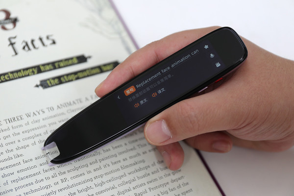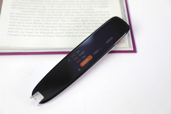 如布AI词典笔V11的扫描光头部分,内置了一颗可以用于识别的摄像头,这也是实现扫描文字进行翻译的核心部分,他能够识别中文、英文或者中英文混合的句子,在面对不同的设计字体以及手写文字,它也能够都能够轻松识别,而且识别速度相当之快。识别完成后会在屏幕上对文字进行显示,同时通过背部的扬声器朗读,语音数据来自国内中小学主流教材的英文原音,孩子可以在理解句子的同时听到更纯正的发音。