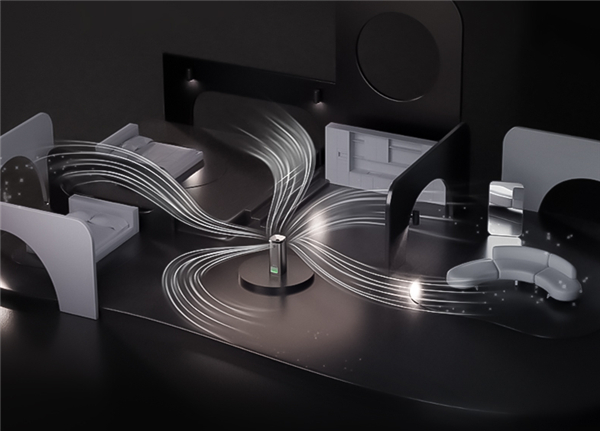 352 H300加湿净化一体机出风口在顶端圆盘的下面,风出来后通过圆盘荷叶状的引导后,吹向四周。送风距离最远可达9米,并且按照H300在地面情况下估计,送风的高度和人坐立躺卧时头的高度接近,湿润的空气更容易被人所呼吸到,使得同等加湿量下,H300更能让人体感到舒适。