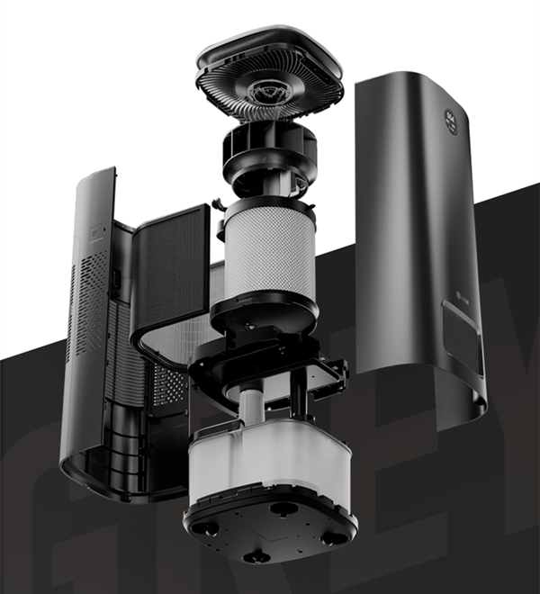 352 H300加湿净化一体机机身以深空灰作为主色调,穹顶式上加水,兼具性能和美感。内置10L大容量水箱,支持拆卸便于深度清洗,产品尺寸为350×350×825,对于小户型的家庭来说也非常友好,不管家里是什么装修风格都显得很有档次。