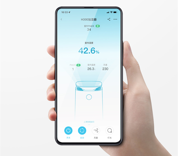 352 H300加湿净化一体机的加湿量是有2500ml/h,即使是100㎡的面积也能够快速、轻松加湿。加湿速度也很快, 五种档三种模式可以选择,最高档就能够满足快速加湿需求,而最低档则可以满足低音运行、小面积加湿的需求,还可以根据自己的使用需求选择相应的档数。