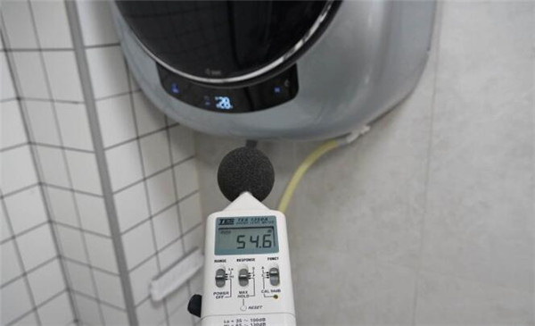因为不少购买壁挂洗衣机的朋友都会将洗衣机安装在浴室里,所以对洗衣机工作时的噪音到底有多大会比较关心。这款挂壁式洗衣机测试到的最大噪音值为54.6dB,而在洗涤时的噪音则仅仅只有46dB左右。