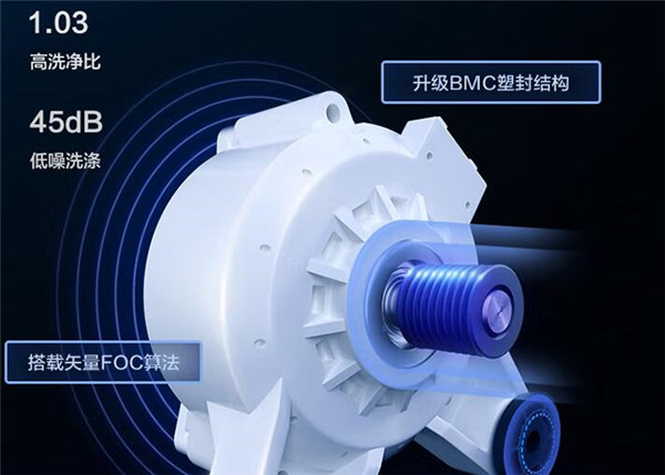 能够有如此安静的工作表现,应该和这款洗衣机所采用的高品质双变频电机有关,这款电机搭载了更加精准的FOC算法,在提升洗涤效率的同时,还能有效降低工作噪音。