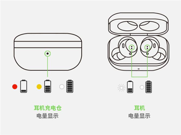 在盒身的正侧面设有电量指示灯,通过红、橙、白三种灯光颜色可以了解充电盒当前电量剩余的大致情况。