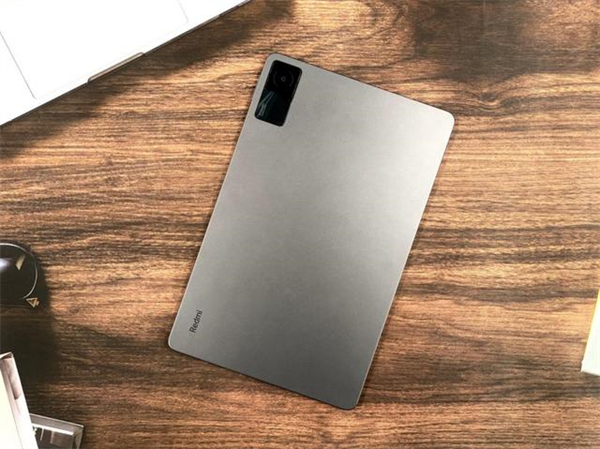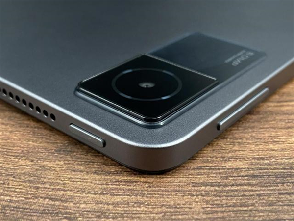 Redmi Pad 提供三种配色,深灰色、银色、烟青绿,我们手上这款“深灰色”配色版本,机身整体呈现深灰色,金属感十足,并且通过特殊结构优化,将WiFi天线巧妙隐藏于后置相机盖板中,实现了全金属一体机身设计,整机无天线断带。