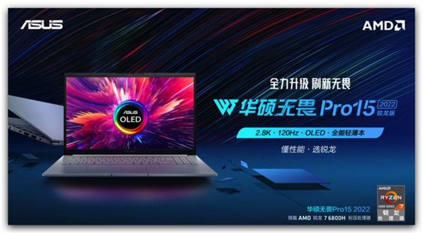 屏幕方面,华硕无畏Pro15 2022 锐龙版搭载了 15.6 英寸 OLED 屏,主打 120Hz 高刷新率 + 2.8K 高分辨率,并且拥有 100% 的 P3 广色域、10.7 亿色(10-bit 色深)色彩显示以及 1000000:1 的对比度。