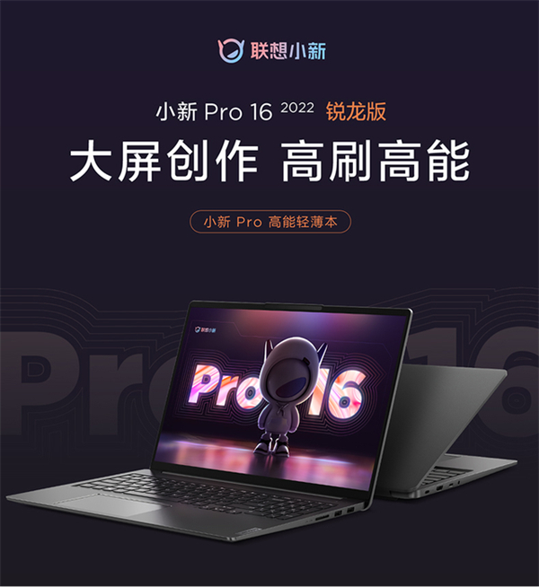 联想小新 Pro16 2022 标压锐龙集显版采用了 CNC 工艺,整机轻约 1.93Kg、薄至 16.9mm,有独立数字小键盘,1.3mm 键程。