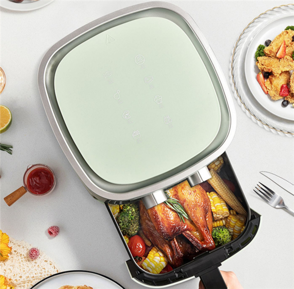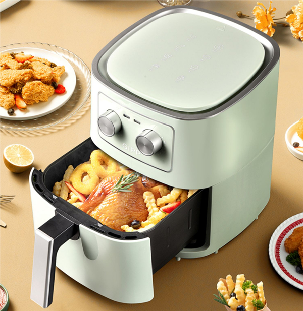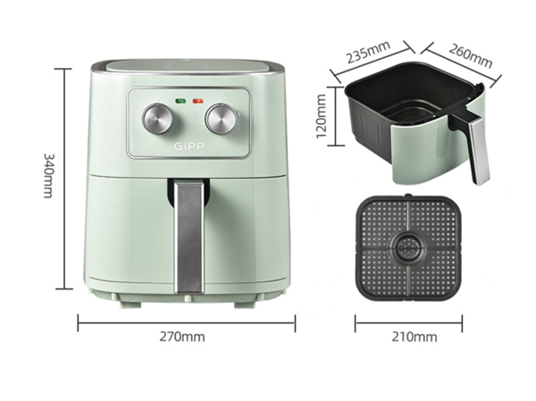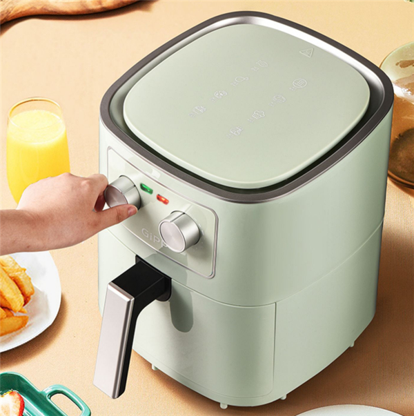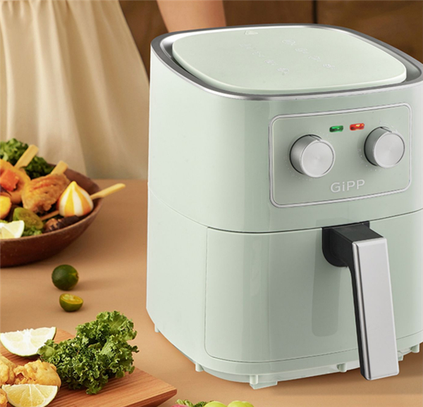 GiPP居派5.5L机械版空气炸锅不但外观清新别致,还拥有5.5L的内部大容量,做“一人食”或者多人大家庭的菜都可以;只有A4纸大小,方便收纳,不用的时候可以放进橱柜,不占用太多空间。简洁的外形放在厨房里还显得更精致,淡绿色的外壳更显生机。
