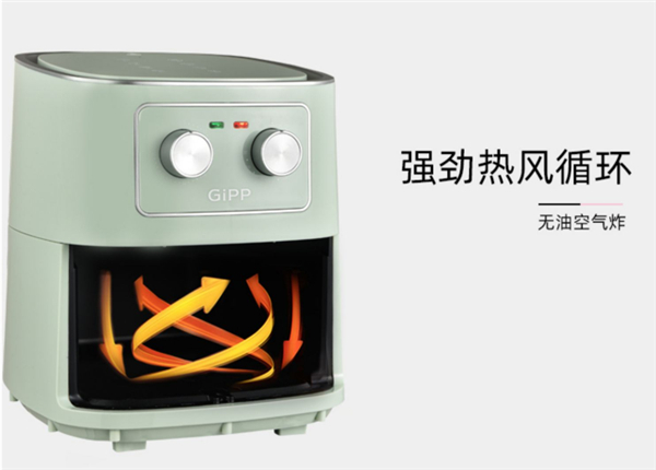 民以食为天,谁也拒绝不了美食的诱惑,那么怎么才能不出家门就可以烹制喜欢吃的美食?说到近几年最为火热的厨房小家电,非空气炸锅莫属了。它的工作原理主要是通过加热空气在密闭的空间内循环,利用食物本身的油脂煎炸食物,从而让食物脱水、表面变得金黄酥脆,就好像油炸的口感。今天给大家介绍的是居派目前最新款:GiPP居派5.5L机械版空气炸锅。