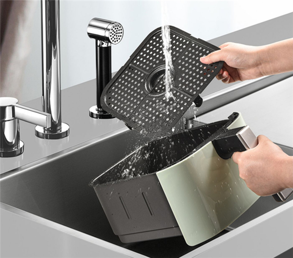 但值得称赞的是而且GiPP居派5.5L机械版空气炸锅,它是分体式抽拉设计,清洗起来较为方便,冷置后将炸篮取出后在水龙头下进行简单的冲洗,再使用厨房湿巾或者直接放入洗碗机中清洗即可。
