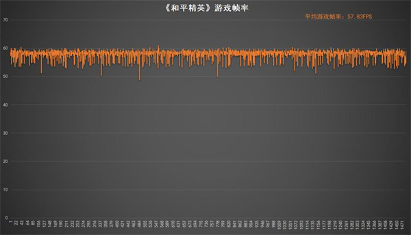 Redmi Note 12 Pro+ 同样可以玩《和平精英》,不过最高游戏帧率只能设置为 60 帧,此时的游戏画质为流畅,游戏帧率有波动,但体验并没有感觉到明显卡顿情况,平均游戏帧率为 57.83FPS,表现尚可。
