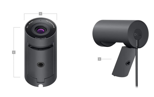 戴尔Pro WB5023采用戴尔家族式的圆柱形外观设计,看上去很像迷你版的监控摄像头。更重要的是,这款摄像头还采用了折叠式的安装夹设计,摄像头底部内置有安装夹,打开安装夹即可将摄像头牢固地放在显示器边框上,而且安装夹还支持多角度调节,上面还设计有防滑垫,所以这款摄像头能够适应大多数显示器,而且它还能够安装在轻薄笔记本上。当然,这款摄像头的底部也预留有标准的三脚架安装孔,可以便捷地安装在三脚架上。