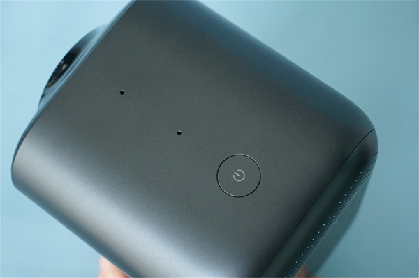 顶部除了电源键外,还有两个麦克风,用于支持远场语音,可一键呼出小爱同学。