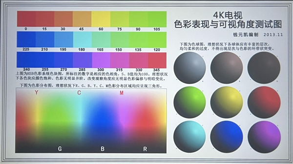 在同等价位中,考虑到只有LED光源,在投射过程中不可避免的会出现光源衰减,但Redmi投影仪Pro的表现属于不错的水准了,在色彩分布图能够准确还原色彩的分布、色球图部分过度也非常柔和,没有出现明显的断层。