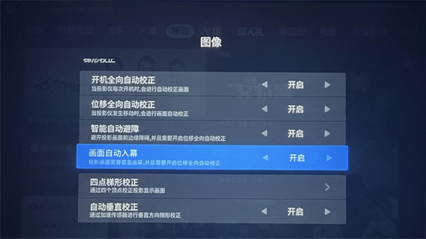 它在功能上将高端投影仪常见的自动对焦、梯形校正、画面自动入幕等功能都包含了,不过部分选项需要手动开启。