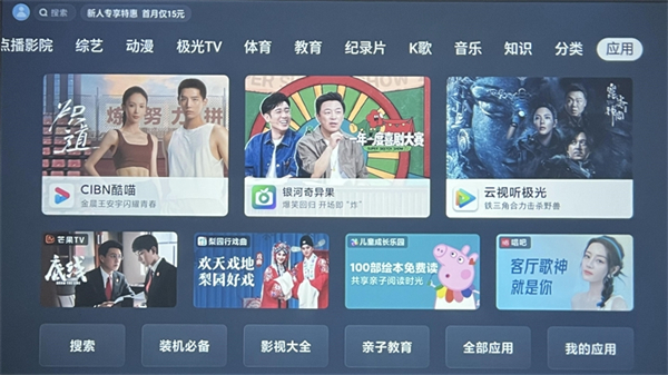 如果觉得自带资源无法满足,那么用户也可以通过应用市场来安装第三方APP,更是涵盖了装机必备、影视大全、亲子教育等类目。