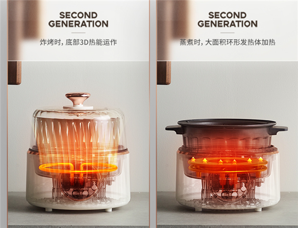 圆形的电子温控面板带有触摸屏设计,时尚简约,同时操作起来也更方便。宜盾普可视空气炸锅是一款多功能空气炸锅,能形成四种不同的形态,分别是空气健康炸、蒸锅、煮锅、煎锅。