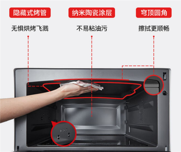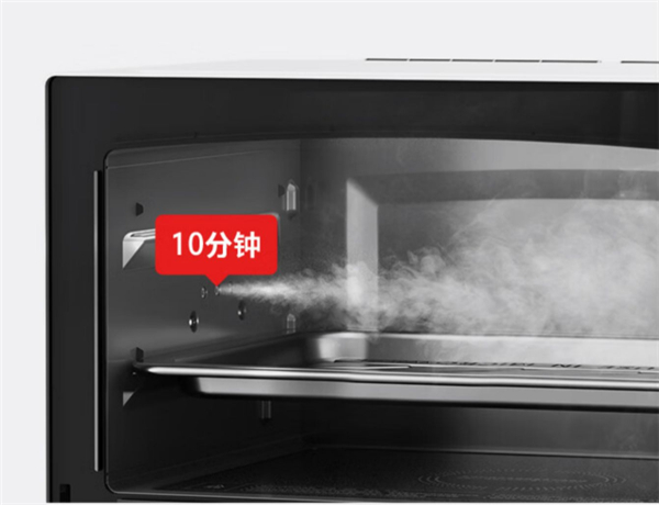 自清洁功能,只需要10分钟就可以完成,蒸汽可以直接溶解油污,打开水波炉,里面全是蒸汽,再用抹布一擦,就彻底干净了,不留水痕。