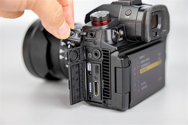松下GH6相机的接口设计也比较丰富,配备有全尺寸HDMI 2.1接口、USB Type-C接口(支持充电)、3.5mm耳机接口、Mic接口以及快门线接口,几乎日常视频拍摄所需的接口都配备齐全了。