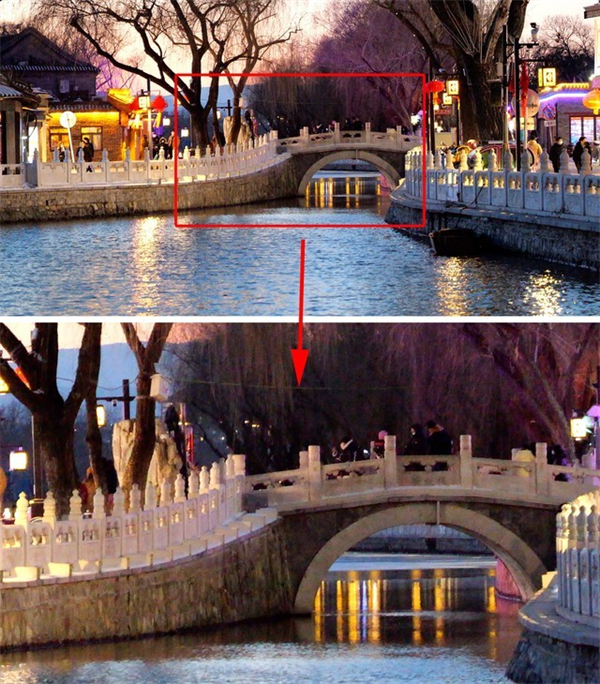 上面图片我们分别截取了100%放大情况下,2520万像素照片以及高分辨率模式下一亿像素照片的相同区域。可以看到只是从截图的分辨率大小就已经有了明显差异,高分辨率模式带来的一亿像素可以记录超高的分辨率,这样我们即使在100%放大下进行细微截图,依然可以保留超高的分辨率。