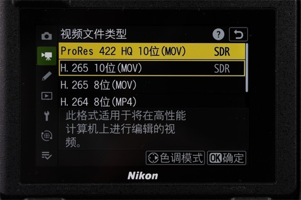 Z 9可以连续录制长达约125分钟8K UHD/30P视频。可以录制 ProRes 422 HQ 10位以及 H.265 (HEVC) 10位和8位,并根据需要选择SDR、N-Log或HLG颜色伽玛曲线。同时Z 9还可以录制长达约125分钟的4K UHD/120P视频。在录制视频时,上面提到的自动对焦系统也可以实时侦测拍摄主体。